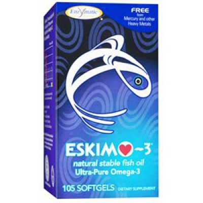 Serving Size: 3 Softgels: Calories 15, Calories from fat 15, Total Fat 1.5 g, Saturated fat 0.5 g, Polyunsaturated fat 0.5 g, Monounsaturated fat 0.5 g, Cholesterol 5 g, EPA (eicosapentaenoic acid) 210 mg, DHA (docosahexaenoic acid) 130 mg, Eskimo-3® brand Fish Oil provides omega-3 fatty acids including 210-270 mg EPA and 130-175 mg DHA 1.5 g, Percent daily values (DV) are based on a 2,000 calorie diet
